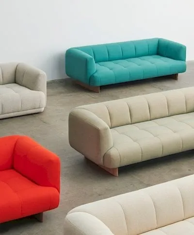 Materiali: Struttura in legno, tessuti o pelle, gambe in alluminio verniciato a polvere o lucidato.