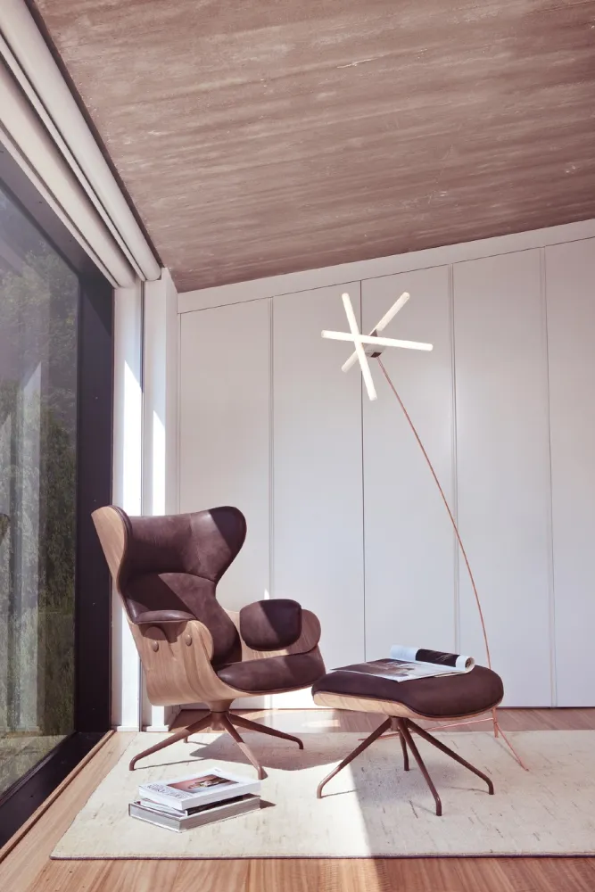 La Lounger di Jaime Hayon ha una struttura curva e un comfort incredibile. Chi vi si siede può semplicemente sprofondare e rilassarsi con grazia. I componenti eleganti e confortevoli si fondono con la struttura a vista della seduta. La morbidezza dei suoi tessuti, della pelle e il pouf invitano a rilassarsi e distendersi nella confortevole scocca. Hayon gioca con il classico moderno della Eames Lounge Chair, dedicando la sua Lounger al futuro con materiali resistenti e di alta qualità e una forma elegante.