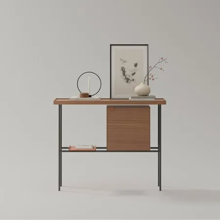 Materiali: Legno massello di noce nero americano, quercia bianca americana e frassino italiano in diverse finiture, con maniglie e gambe in ghisa.