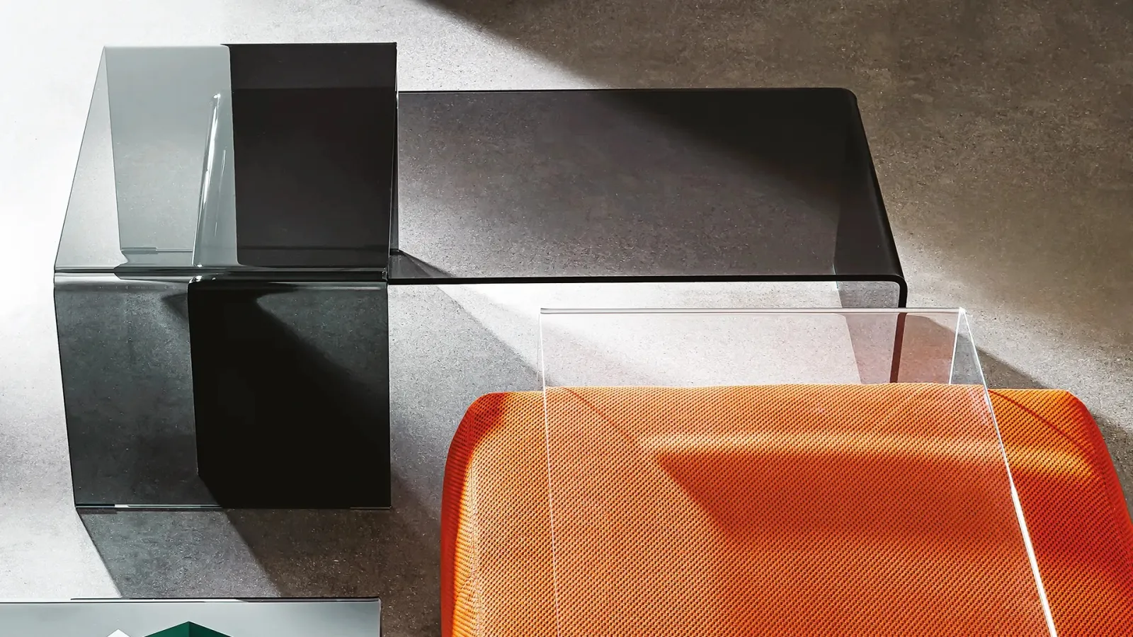 Tavolino interamente in vetro curvato. Una linea essenziale che non può mancare nel vostro soggiorno.