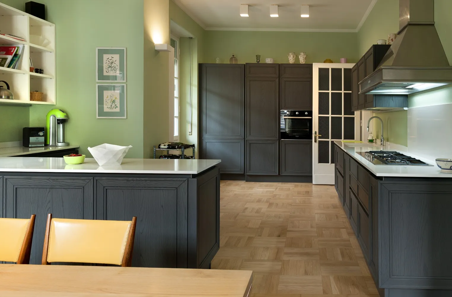 La committenza ha richiesto ambienti molto ampi , pratici, funzionali, ma all’occorrenza chiudibili.